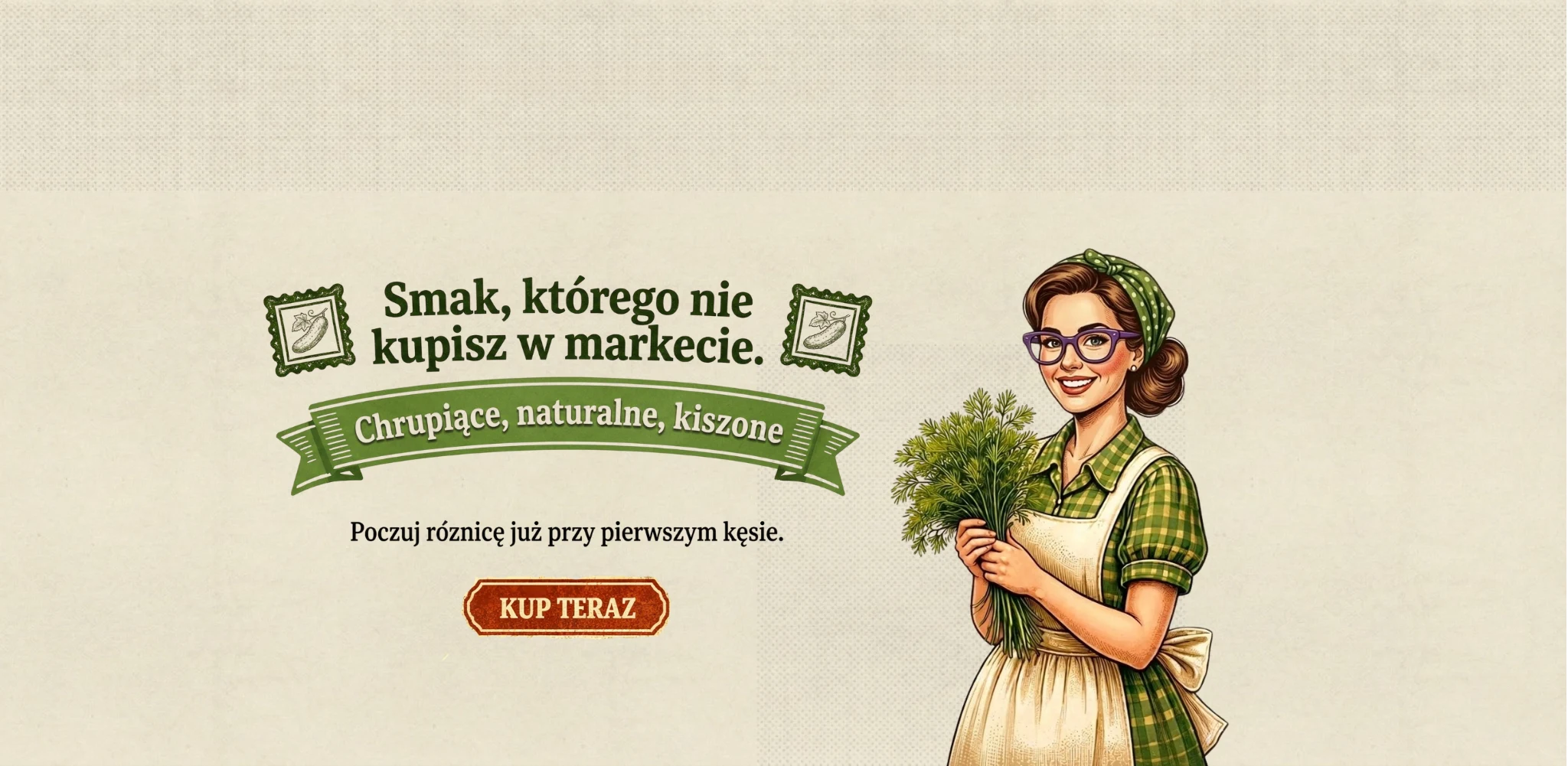 Nasza historia zaczęła się od zapachu kopru, lata zamykanego w szklanych słoikach i wspólnych wieczorów z Mamą. To tam narodziła się bezkompromisowa definicja idealnego ogórka: musi być twardy, chrupiący i autentyczny w smaku. Choć życie nie pozwoliło na przekazanie spisanego przepisu, zostawiło coś cenniejszego – pamięć smaku i upór w dążeniu do perfekcji.
